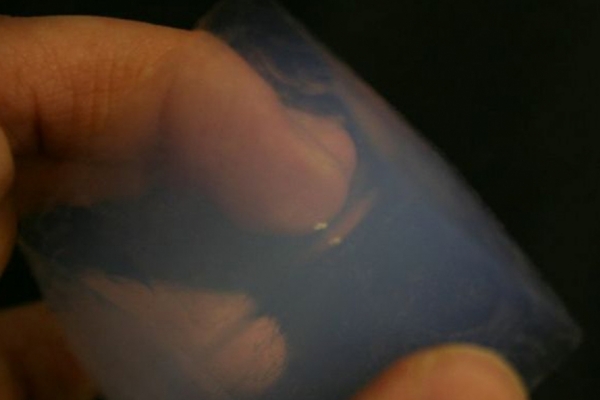 This is a rare sample of silica aerogel which is essentially a glass foam whose nano-structure contains up to 99.8% air, making it the world's lightest solid. It was made by Steve M. Jones, NASA Jet Propulsion Laboratory as part of the Stardust research project, which involved sending a spacecraft containing a large piece of aerogel on a close approach to the comet Wild 2 in order to collect space-dust. What made aerogel ideal for the mission was that, this ultra fine foam can gradually decelerate and capture dust particles in pristine condition. The process of then sifting through the aerogel, micron by micron, to identify and collect the space-dust was the world’s largest collaborative microscopy activity. The material appears to be much more invisible than glass despite being less transparent for there is no hint of reflection on its surfaces, giving it the appearance of not being fully solid. Its azure colour is not due to any pigmentation, but is caused by the same phenomenon that gives colour to our Earth's atmosphere, namely Raleigh scattering of light. In other words, it is blue for the same reasons that the sky is blue. Explore aerogel on the Institute of Making website: https://www.instituteofmaking.org.uk/materials-library/material/aerogel.